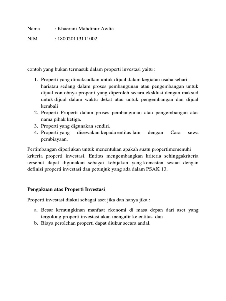 Contoh Soal Properti Investasi Docx Contoh Soal Psak 13 Properti Investasi Soal Klasifikasi Contoh Yang Bukan Properti Investasi Psak Properti Yang Course Hero from www.coursehero.com We did not find results for: Maybe you would like to learn more about one of these? Check spelling or type a new query.